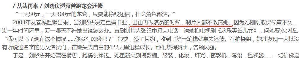 最初是成为影后,其后却沦为囚徒,起初拥有亿万身家,随后跑去跑龙套来还债,她一直坚信着:“人人都在骂刘晓庆,然而又人人都渴望变成刘晓庆。”她30岁拿到百花影后,在事业处于低谷的时候,放下架子从一天戏份只有50块的角色重新起步,这般坚韧实在不得不让人佩服 。